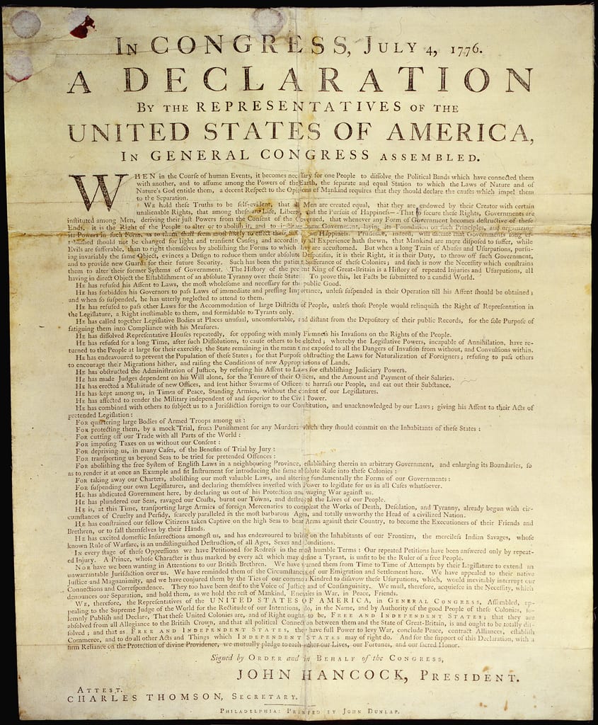 Declaração de Independência dos Estados Unidos, proclamada em 4 de julho de 1776, está na afirmação de princípios universais de liberdade e direitos naturais.